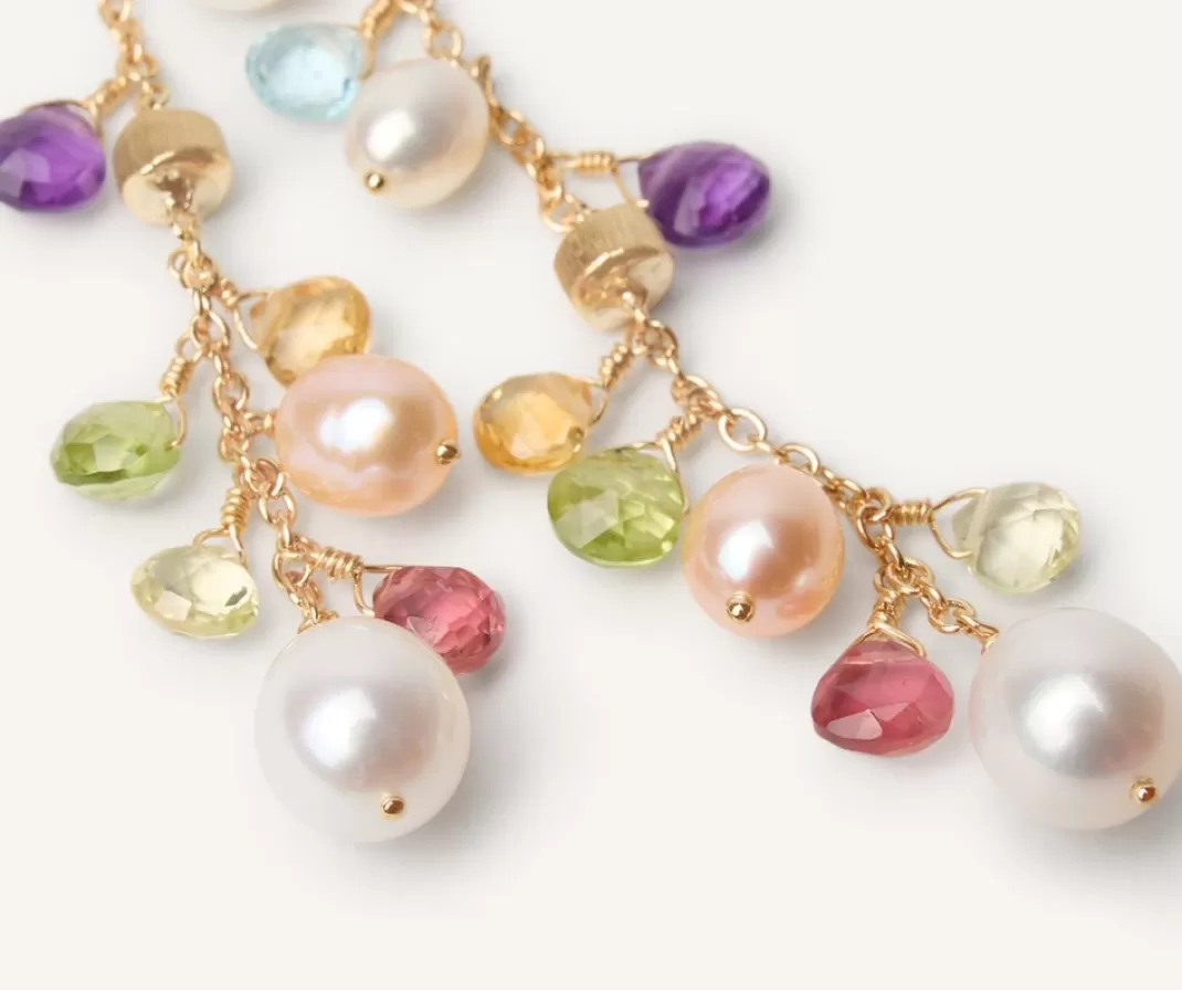 18Kt Yellow Gold Pearls And Gemstones Long Drop Earrings*Marco Bicego Online