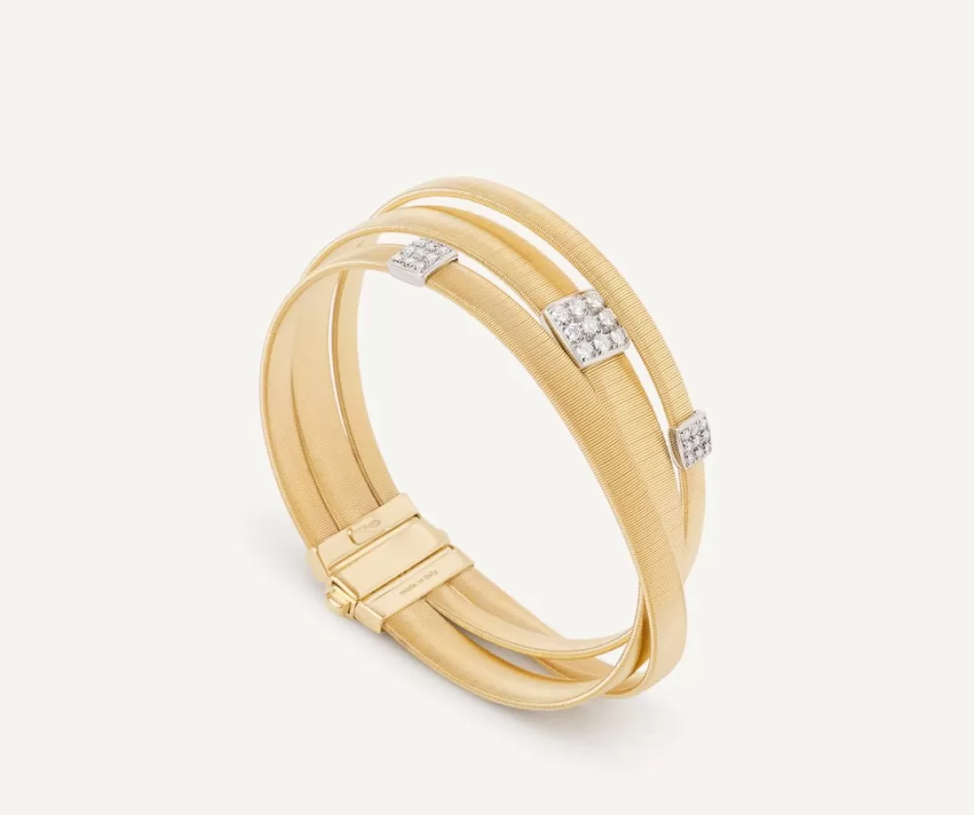18Kt Yellow Gold Three-Strand Bracelet With Diamond Pave*Marco Bicego Shop