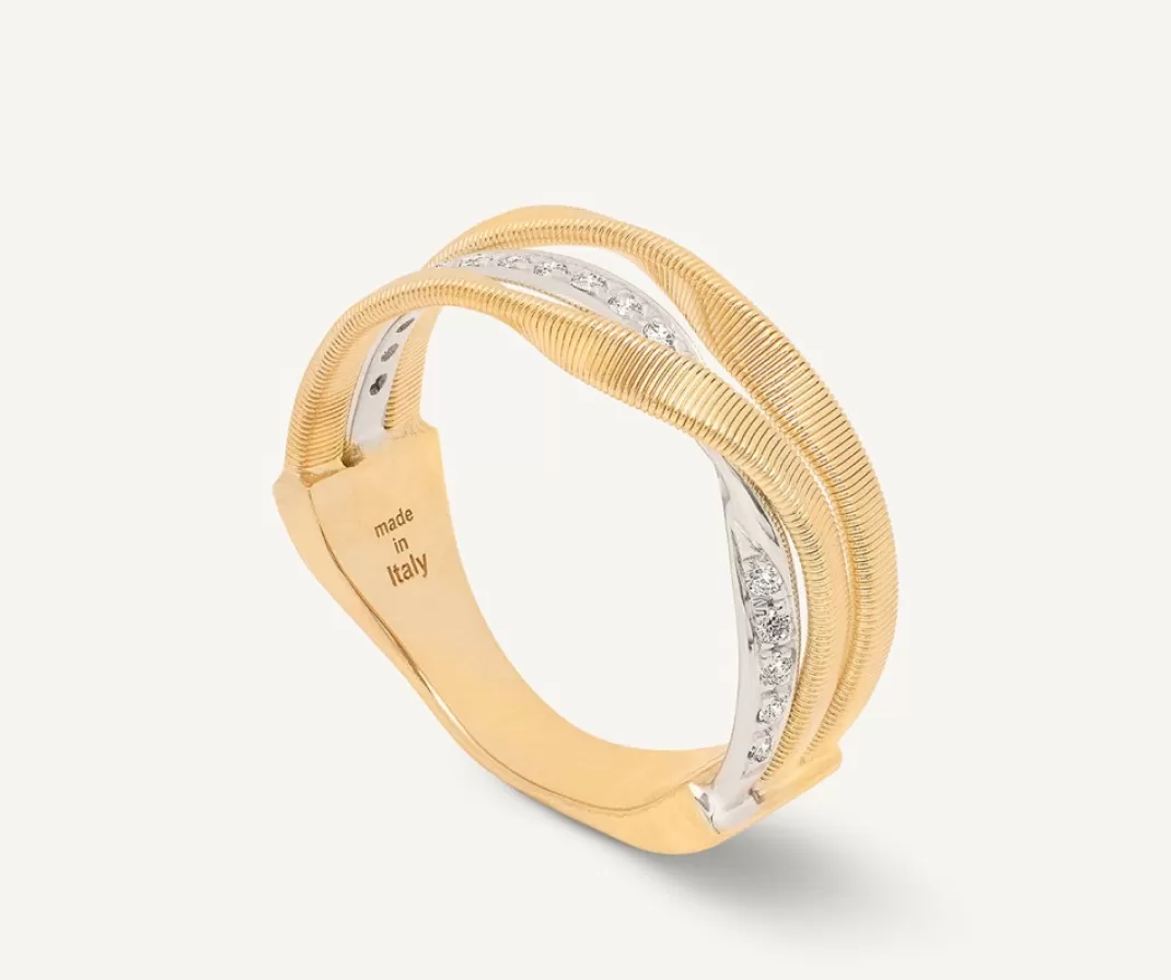 18Kt Yellow Gold Three-Strand Coil Ring With Diamonds*Marco Bicego Sale