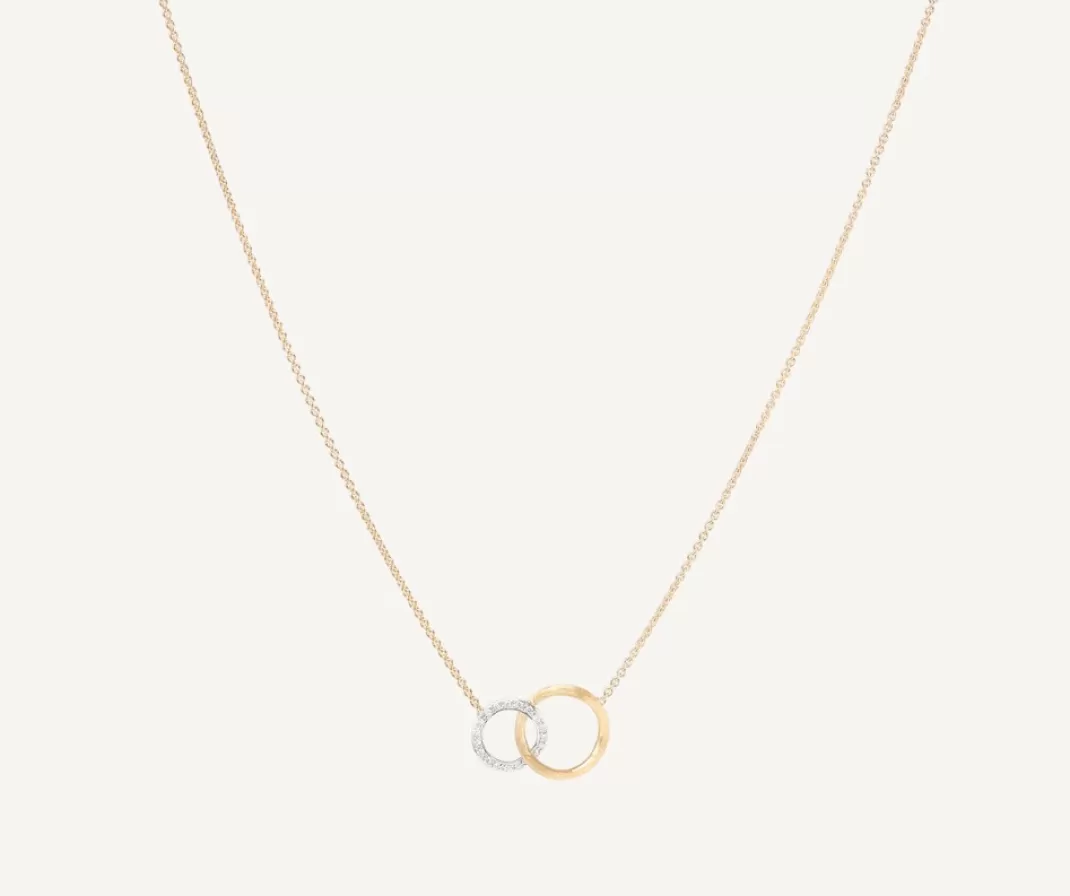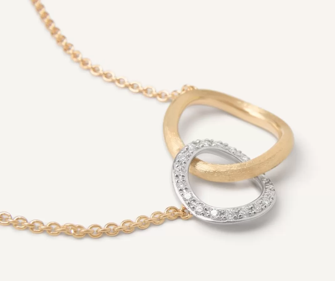 Un Collier Qui Raconte Une Histoire De Liens Indissociables. Un Lien En Or Blanc Et Diamants S’Enlace Avec Un Element Rond En Or Jaune 18 Carats, Finement Grave A La Main Selon Une Ancienne Technique Florentine. La Chaine Reglable Rend L’Ensemble Polyvalent Et Facile A Porter.