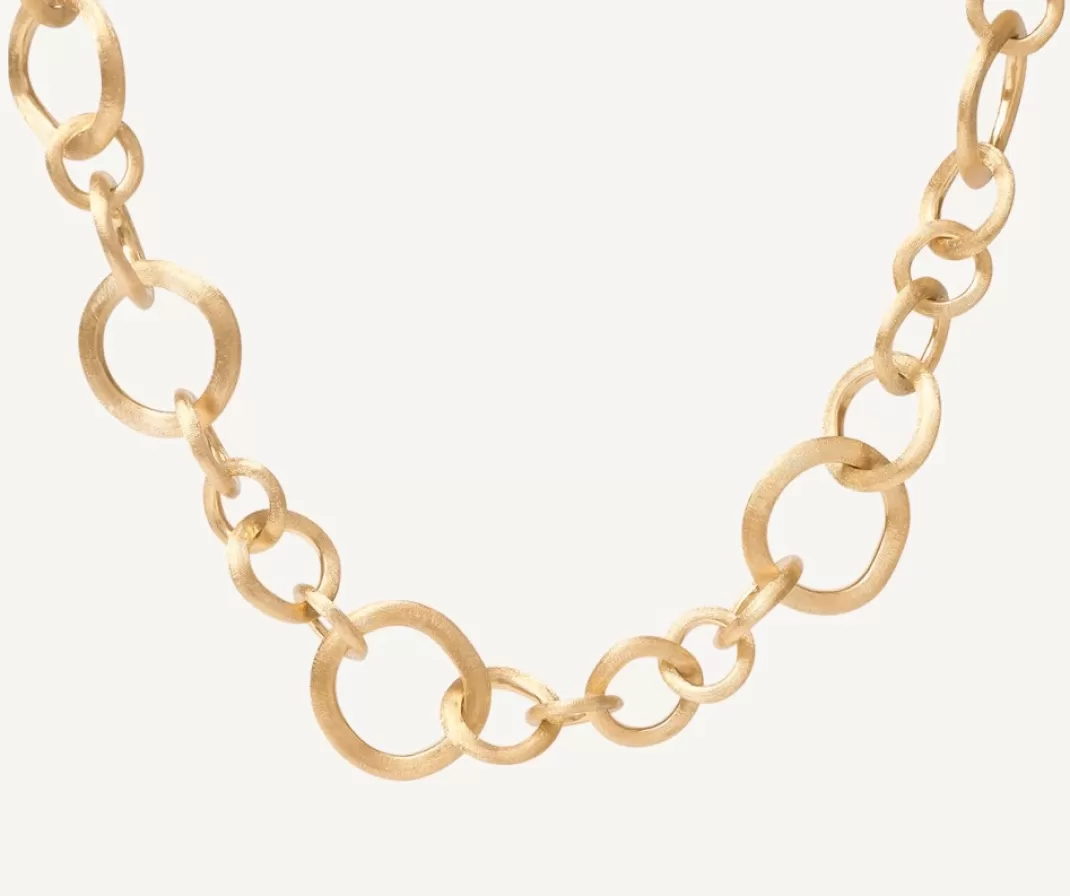 Un Collier Sans Compromis, Audacieux Et Elegant. Ce Collier Se Demarque Par Un Jeu Equilibre D’Alternances Entre Pleins Et Delies. Une Chaine D’Elements Ronds De Differentes Tailles En Or Jaune 18 Carats, Finement Graves A La Main Selon Une Ancienne Technique Florentine.