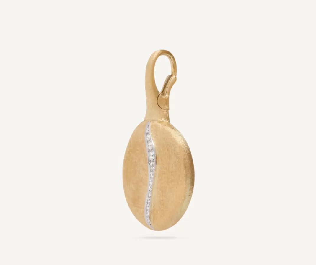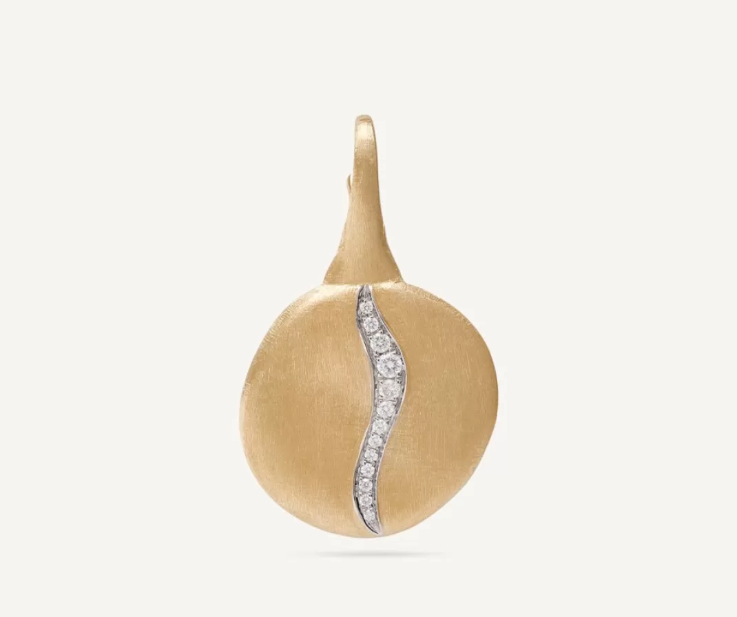 Ce Pendentif Est Rehausse D’Un Elegant Pave De Diamants Taille Brillant, Aux Contours Irreguliers Et Au Design Sophistique. L’Or Jaune 18 Carats Est Finement Grave A La Main Selon Une Ancienne Technique Florentine.
